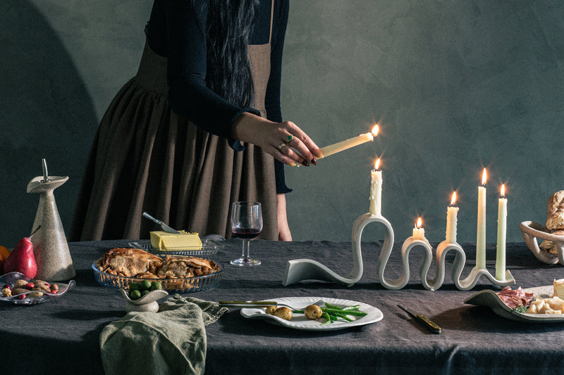 A study in tension, softness, and structure. Named for the delicate linear patterns known as striations, the STRIA Collection finds its rhythm in repetition. Each ceramic strip is hand-placed to form a lattice of light and shadow, echoing the quiet poetry of repetition.