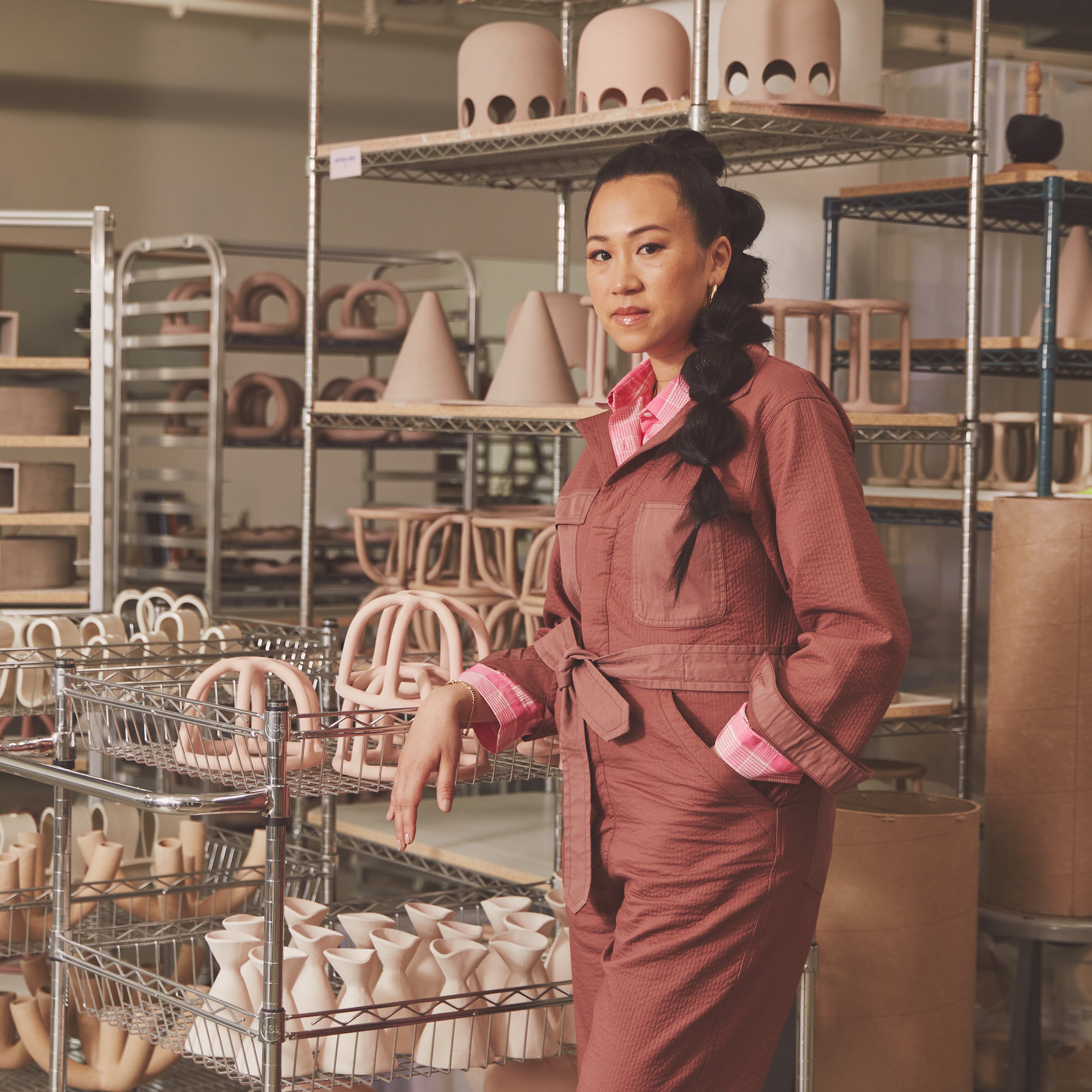 Her work now spans functional sculpture, lighting, and decor—from tabletop to kitchen and dining—all handcrafted with a signature warmth and restraint. Her porcelain paper plates were used at Eleven Madison Park, and her designs have been featured in Architectural Digest, The New York Times, Domino, Goop, The Today Show, and more.