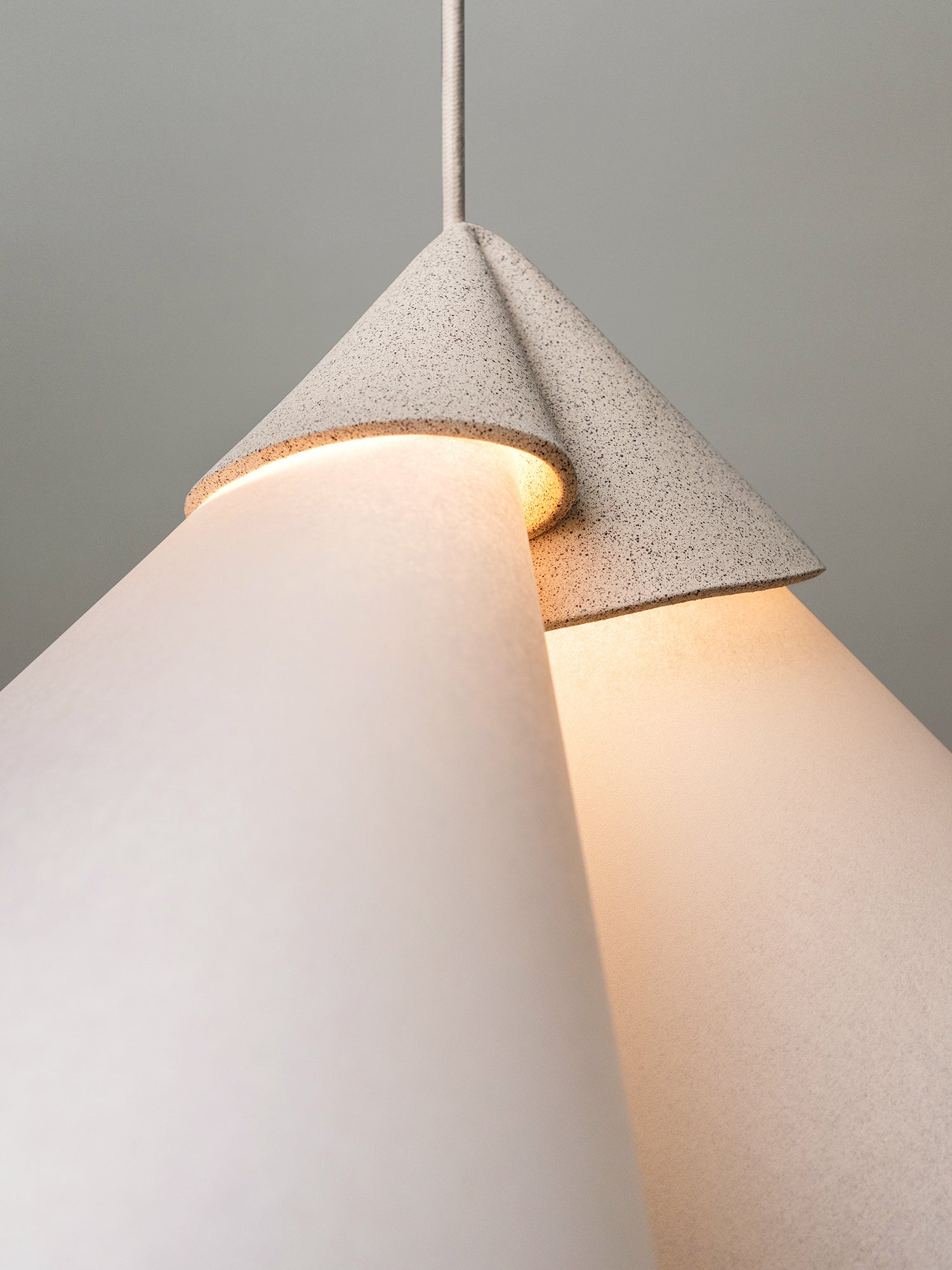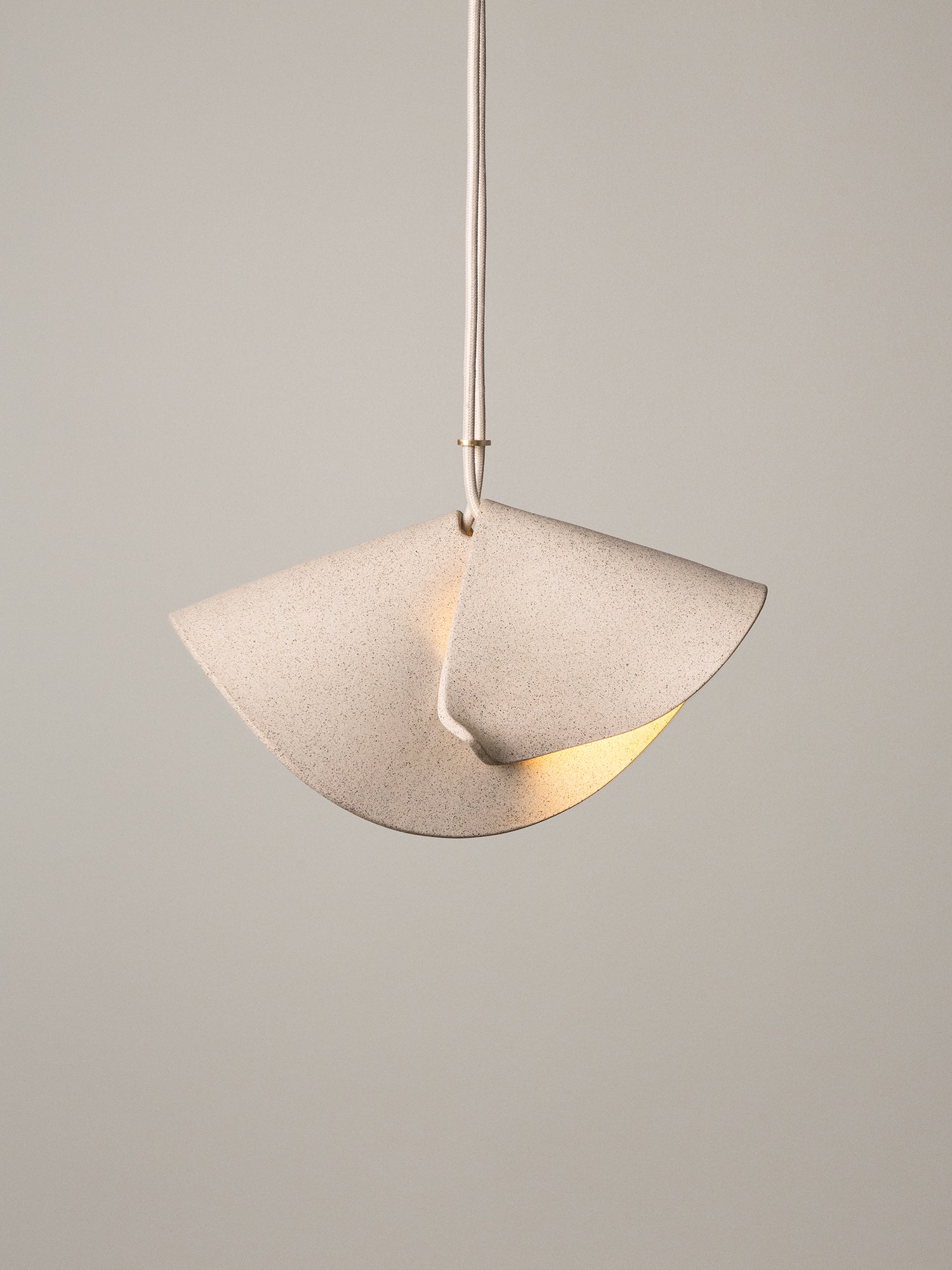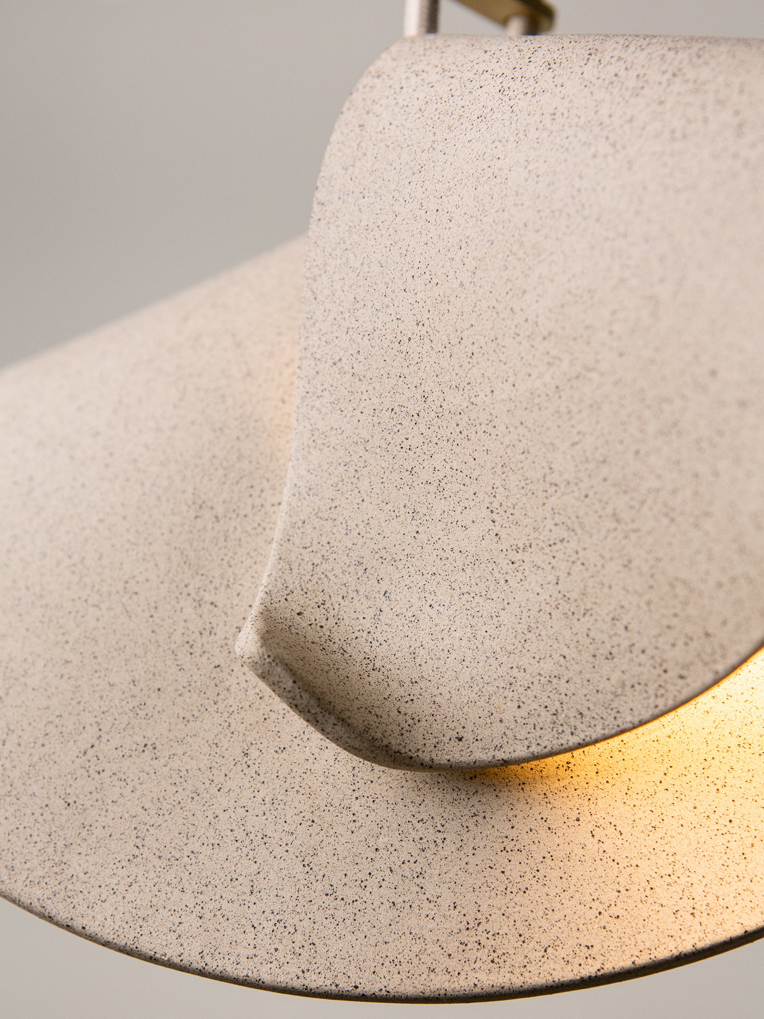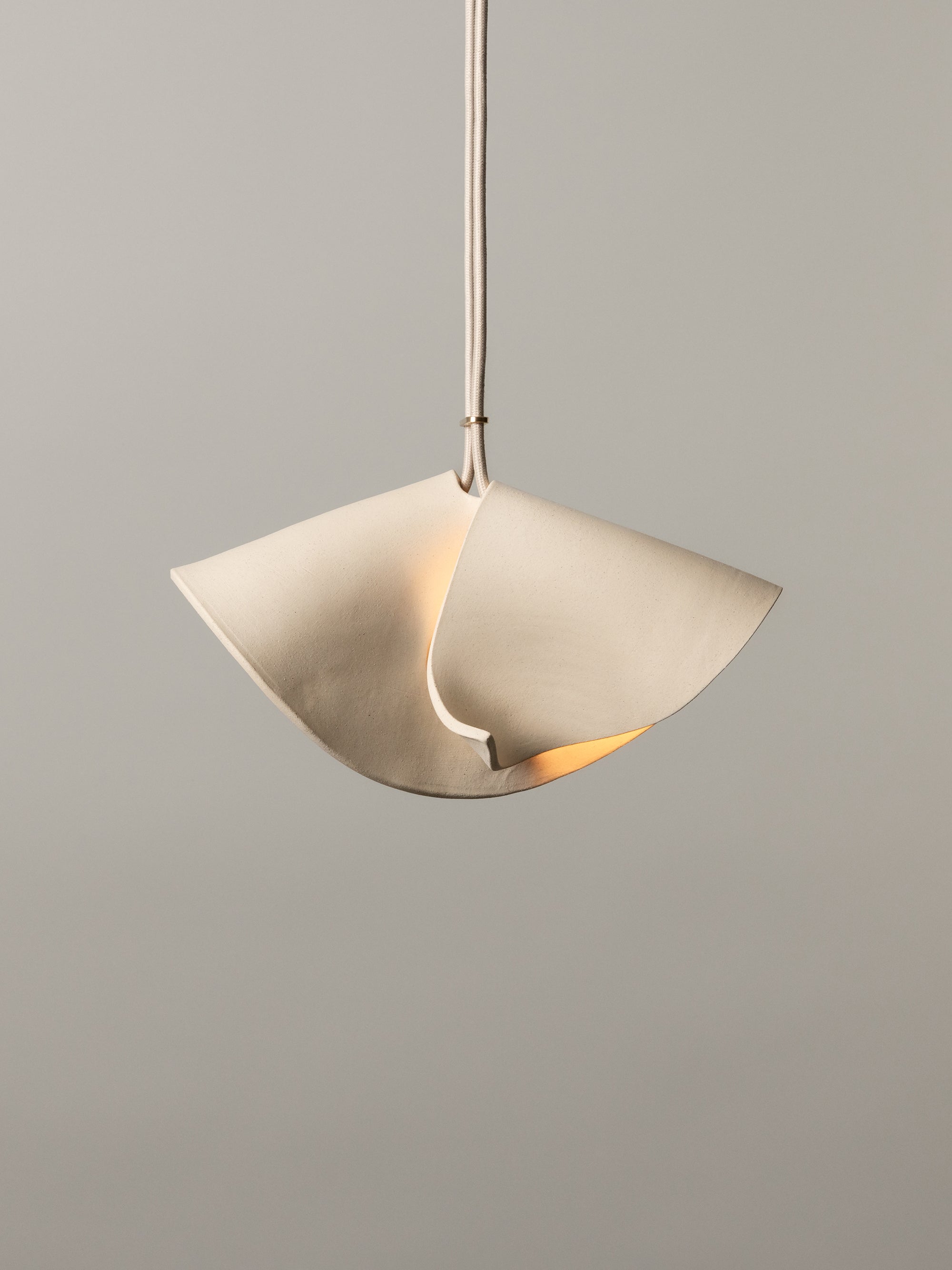 Suspended in a moment of stillness, the Shado Pendant reinterprets the beauty of origami in a medium that yields to gravity. The fixture’s folded form captures the essence of paper caught mid-motion, creating a sense of weightlessness in ceramic. Its downward-facing design directs light with intention, casting a glow that feels as effortless as its sculptural silhouette.