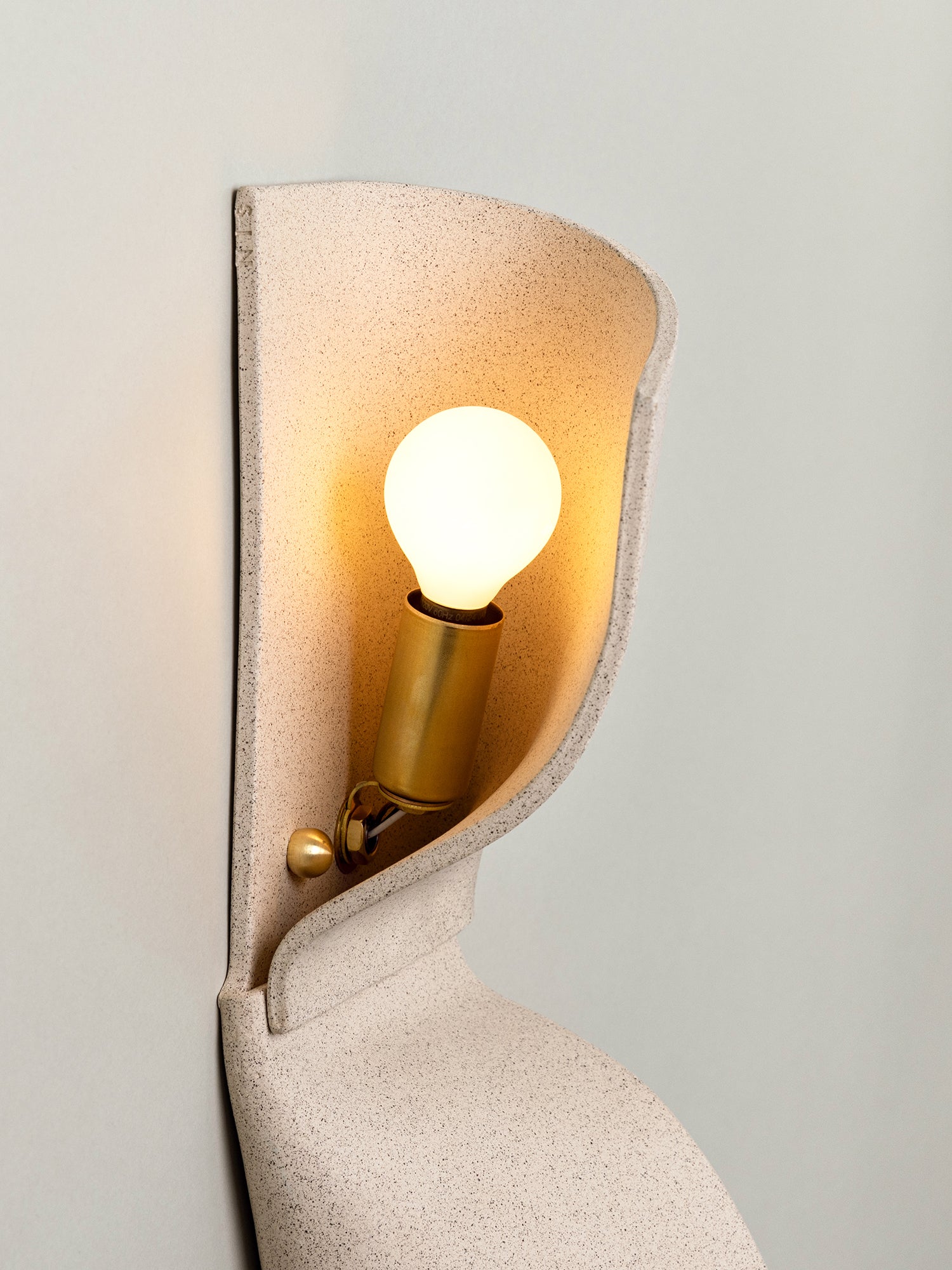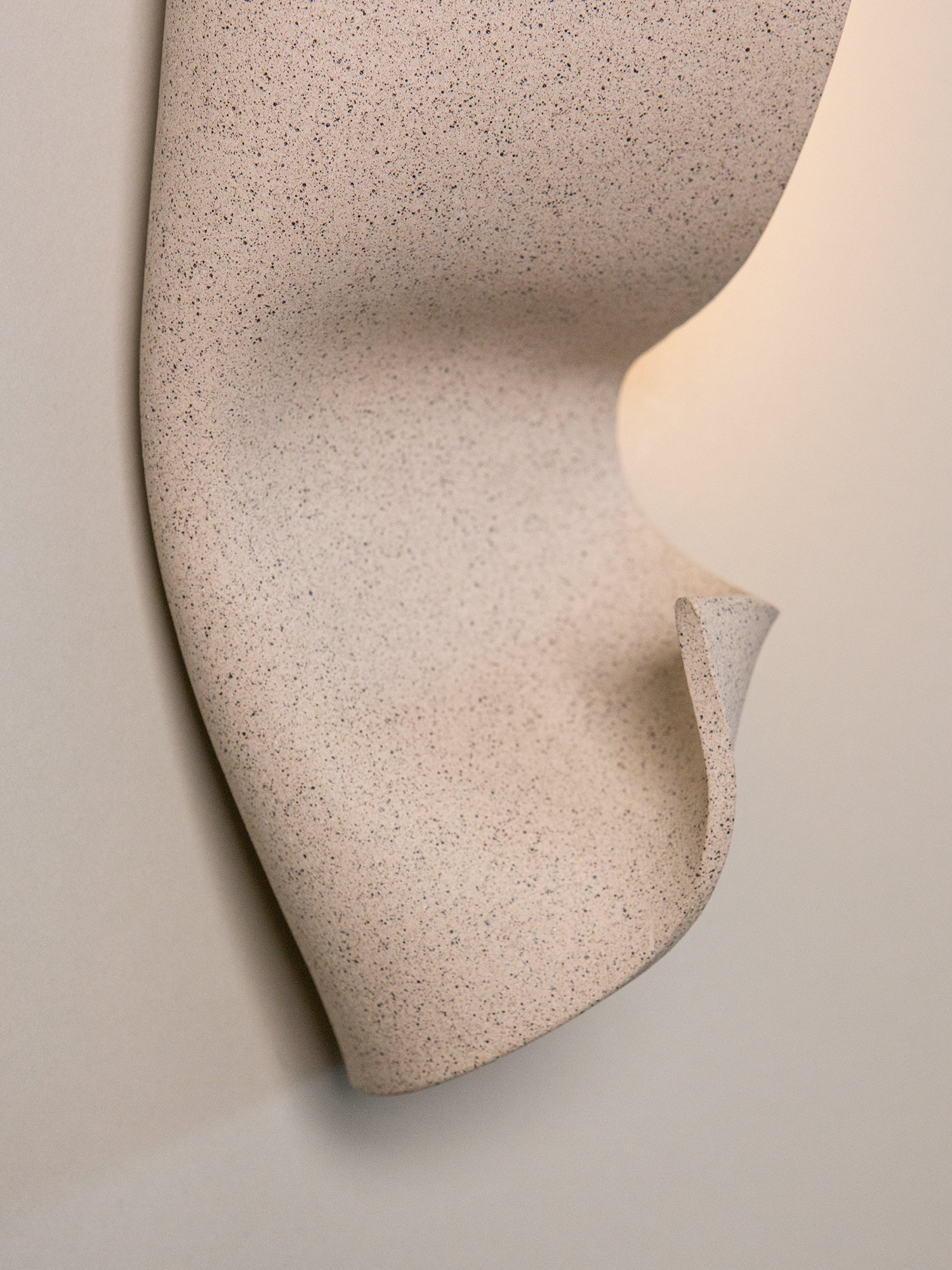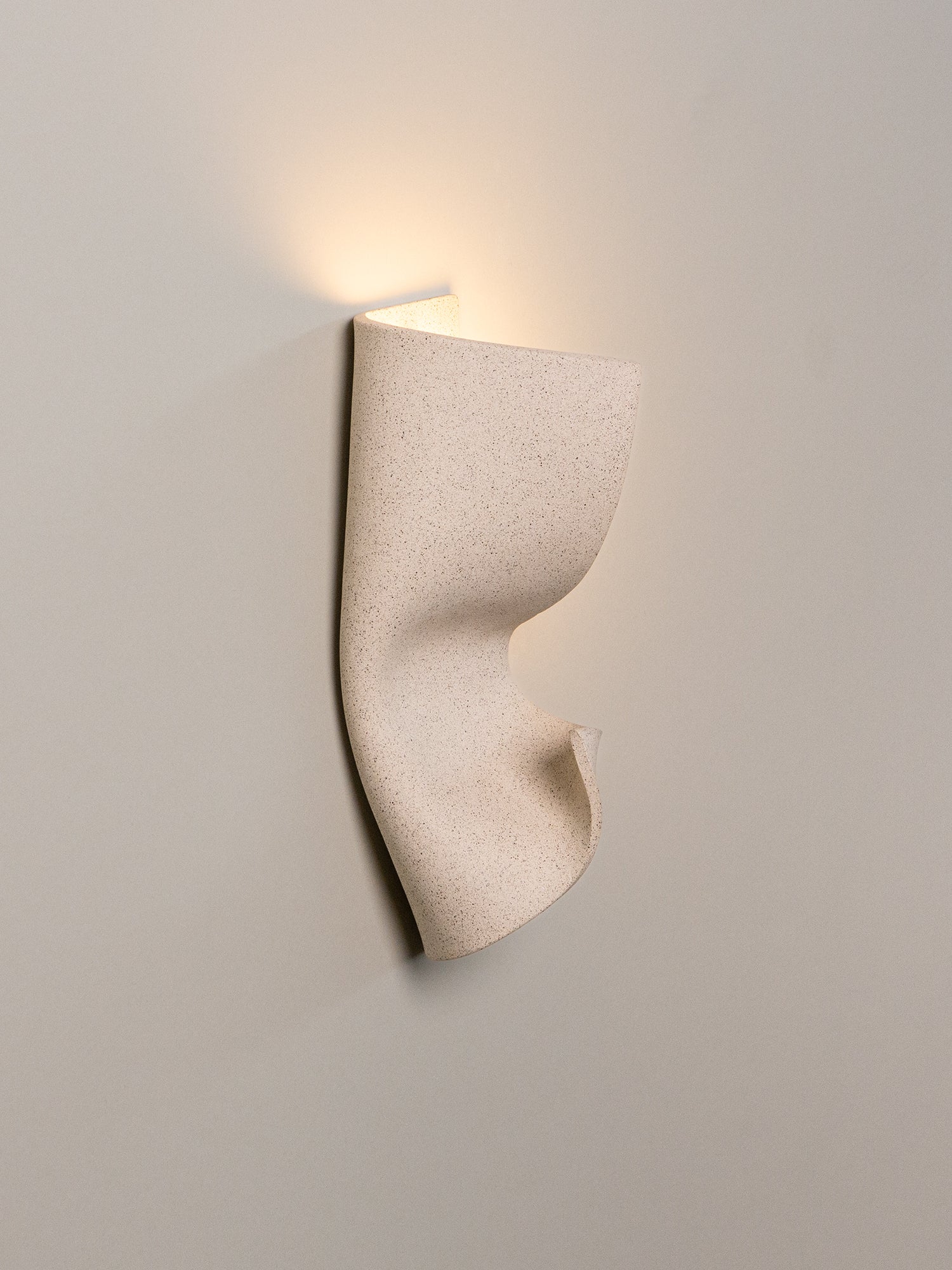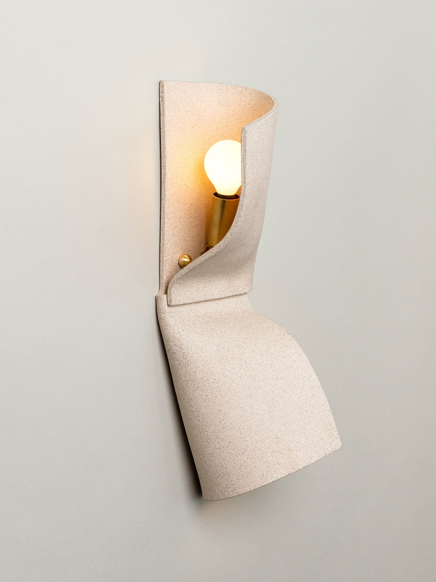 The Shai Sconce is a study in balance—where structured lines meet organic softness. Its gently curved profile, reminiscent of a folded ribbon, was achieved through careful manipulation of clay, a material that resists the crisp precision of paper. This duality—firm yet delicate, grounded yet airy—creates a sculptural light that emanates warmth while serving as an elegant focal point.