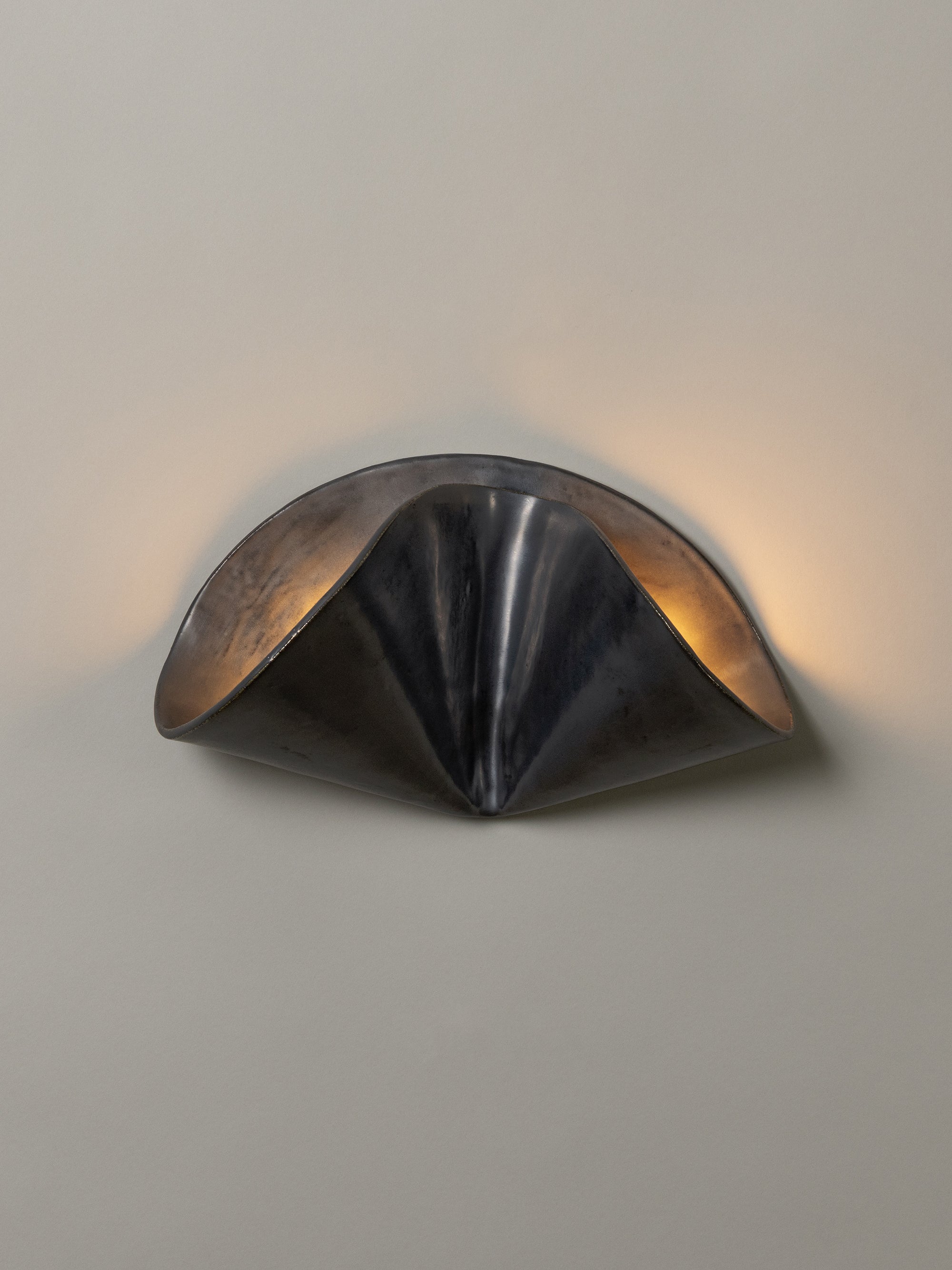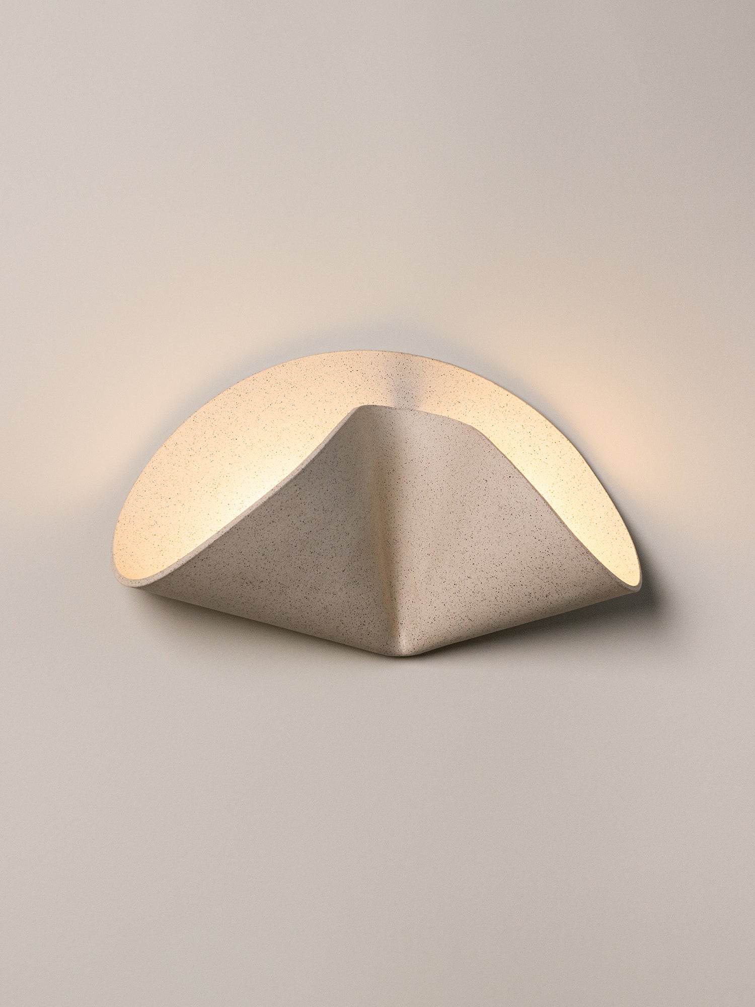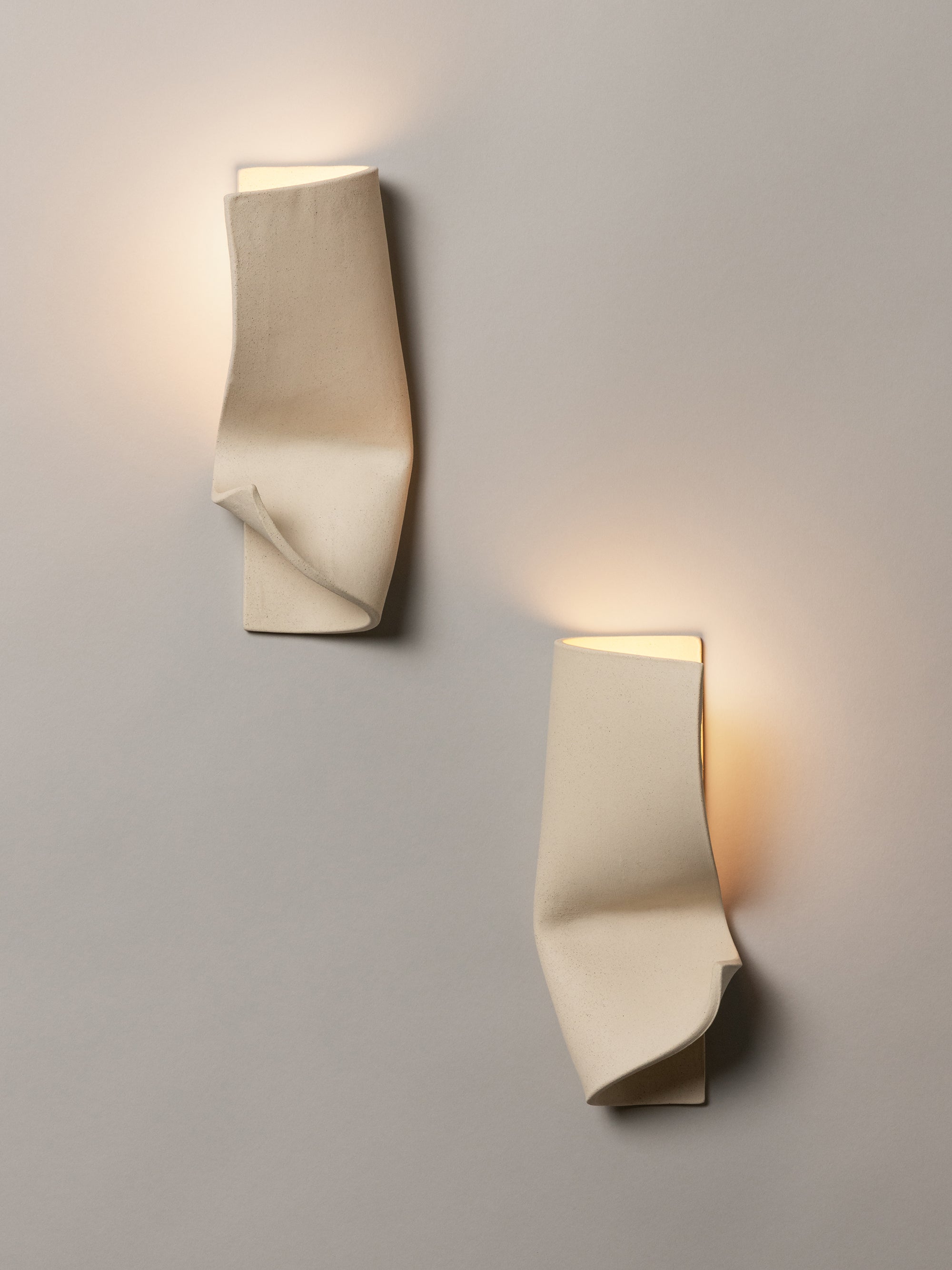 The Double Shai Sconce channels the refined beauty of origami into a layered ceramic wall piece that feels both structured and weightless. Each fold and curve reflects the balance of complexity and ease, transforming the wall into a gentle landscape of light and shadow. It works beautifully flanking a bathroom mirror, adding sculptural depth to a hallway, or providing a graceful accent beside a bed.