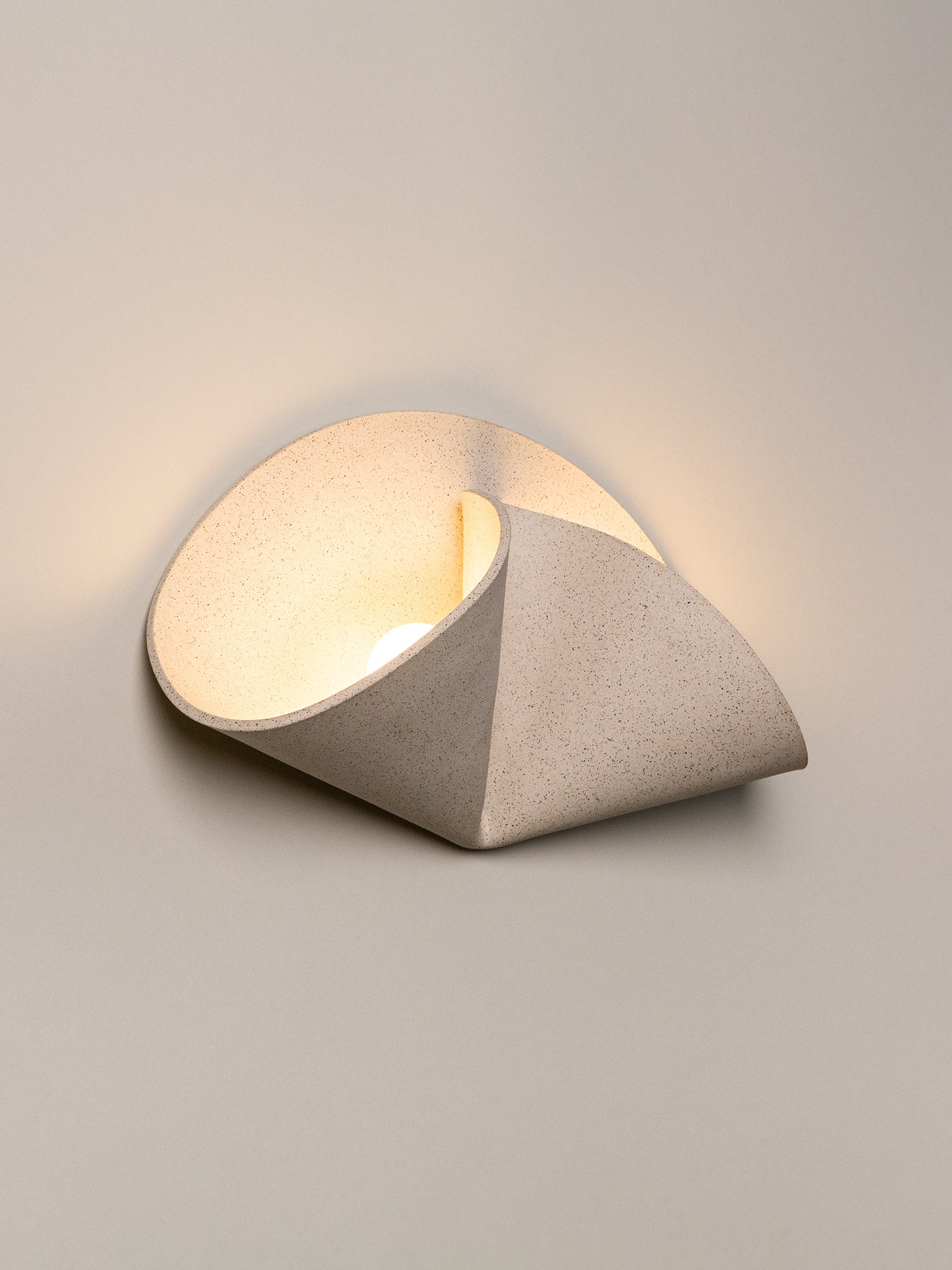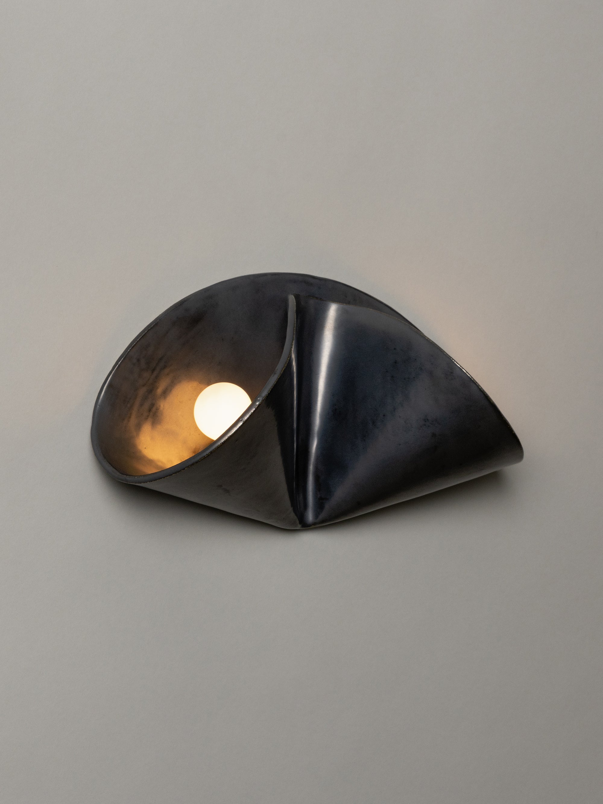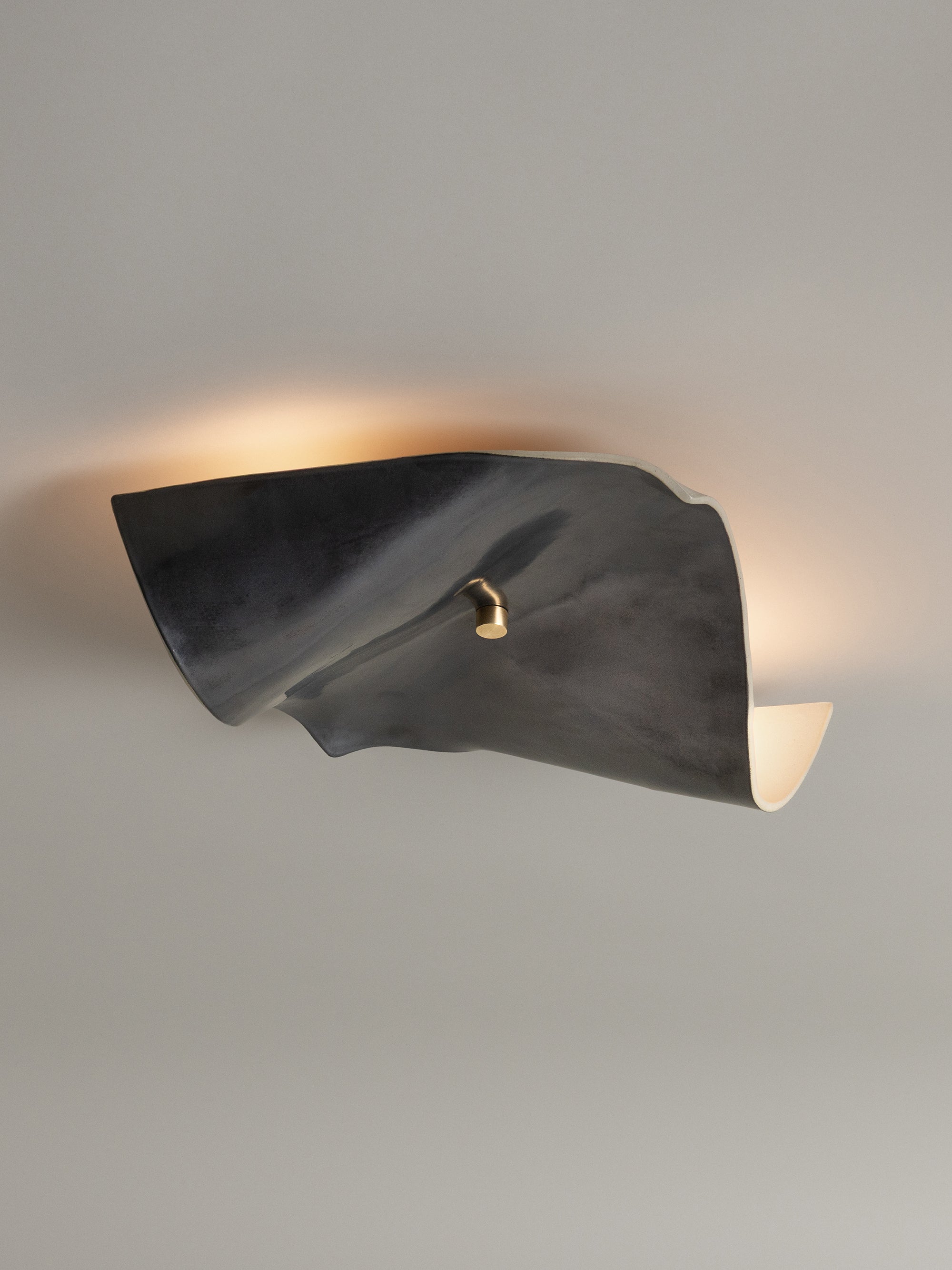 A quiet interplay of light and shadow, the Shado Sconce folds the essence of origami into ceramic form. Inspired by the precision and grace of paper folding, this piece is sculpted from a single sheet of clay, its form gently collapsing into a structured yet fluid silhouette. The result is a fixture that feels weightless yet grounded—casting a soft, directional glow that enhances the space with warmth and movement.