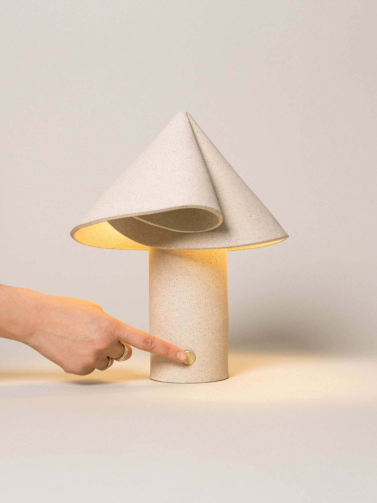 An exploration of soft structure, the Shayd Table Lamp brings a tactile warmth to the Gami Collection. Its pleated silhouette, formed through the delicate folding of clay, echoes the intricate yet organic nature of origami. The result is a sculptural piece that plays with shadow and light, diffusing a glow that shifts as the form unfolds.