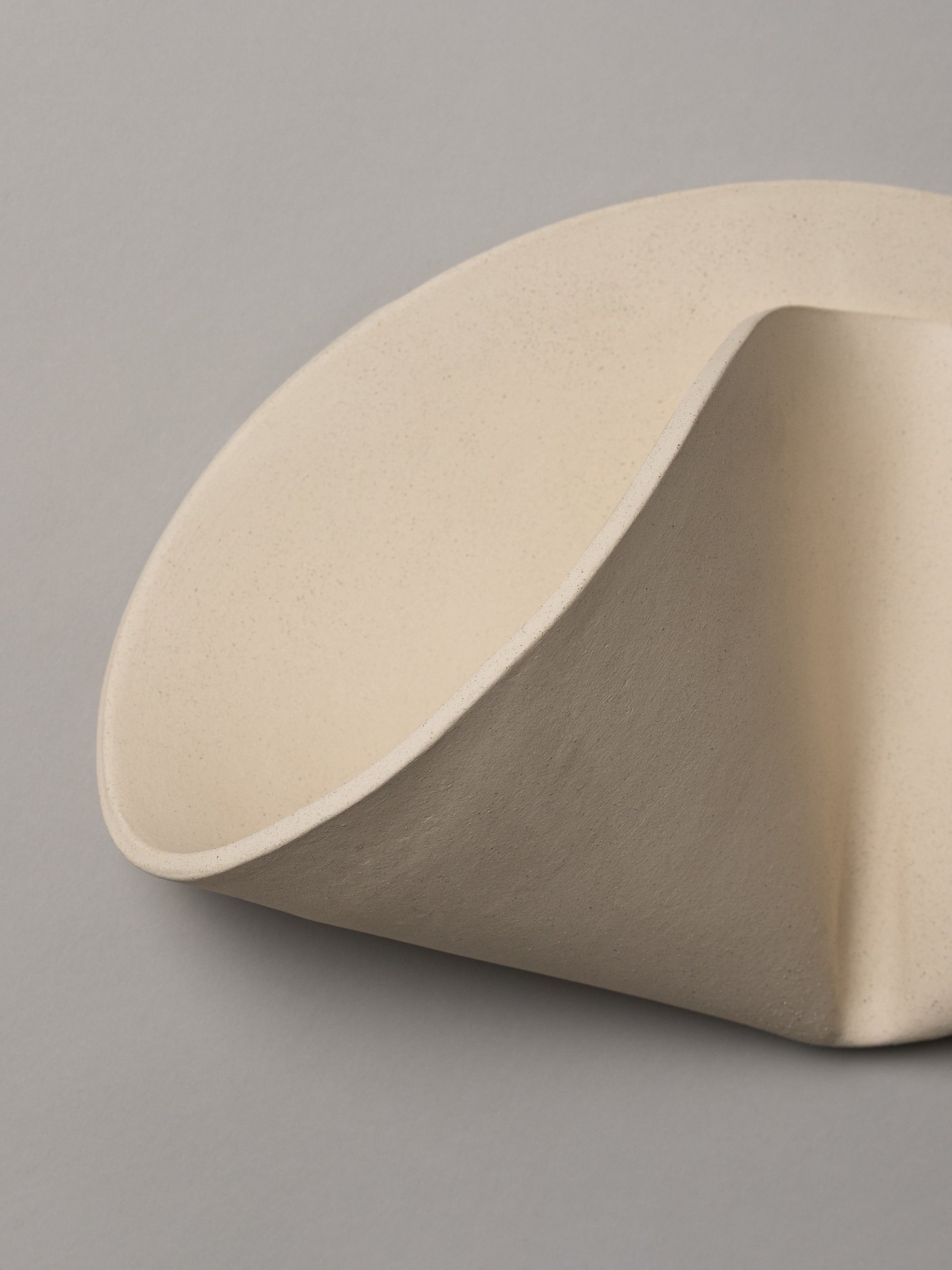 The Gami Collection is a study in transformation—where the fluid precision of paper folding meets the weight and resistance of clay. Inspired by the Japanese art of origami, each piece in the collection is shaped from a single sheet of clay, embracing the material’s natural tendencies while challenging its limitations. The process mirrors the quiet complexity of folding paper: a balance of structure and softness, discipline and spontaneity.