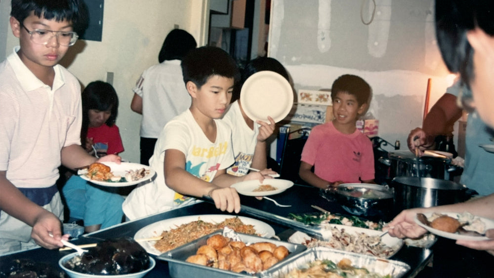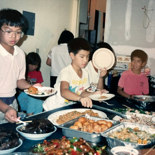 "This plate is my tribute to the beautiful chaos of my childhood; of family-style potlucks, lovingly cooked Cantonese dishes served in disposable trays, and eight cousins fighting for a seat at the lazy susan.
