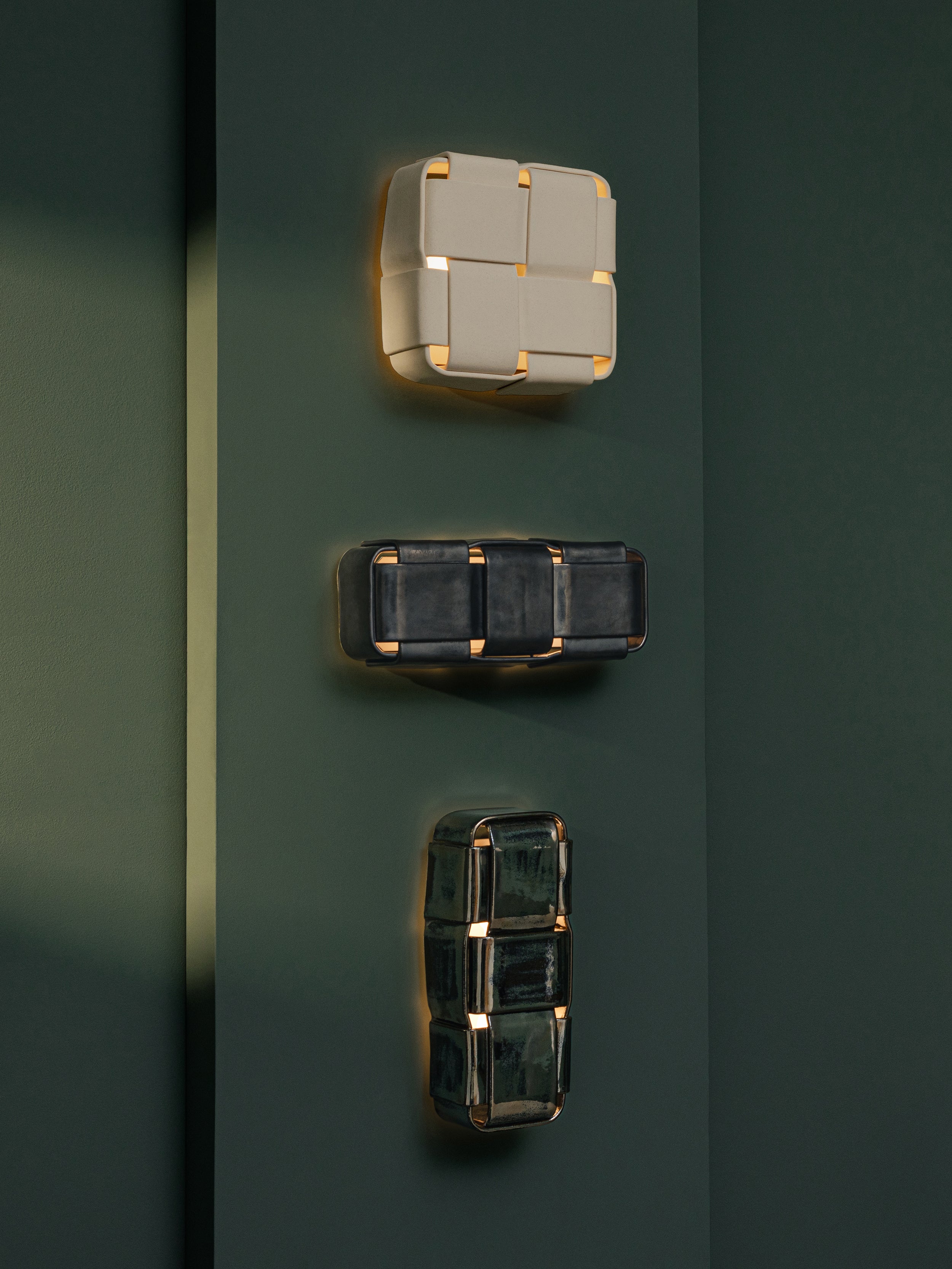 A sculptural study in tension and rhythm, the Stria 3 Sconce takes inspiration from the ancient, cross-cultural practice of weaving, where quiet poetry emerges through repetition. Hand-placed ceramic strips form a delicate lattice of light and shadow, inviting warmth and dimension to your walls. Perfect for casting a soft glow in a cozy reading nook or adding gentle texture along a hallway, it transforms simple moments into layered, inviting spaces.