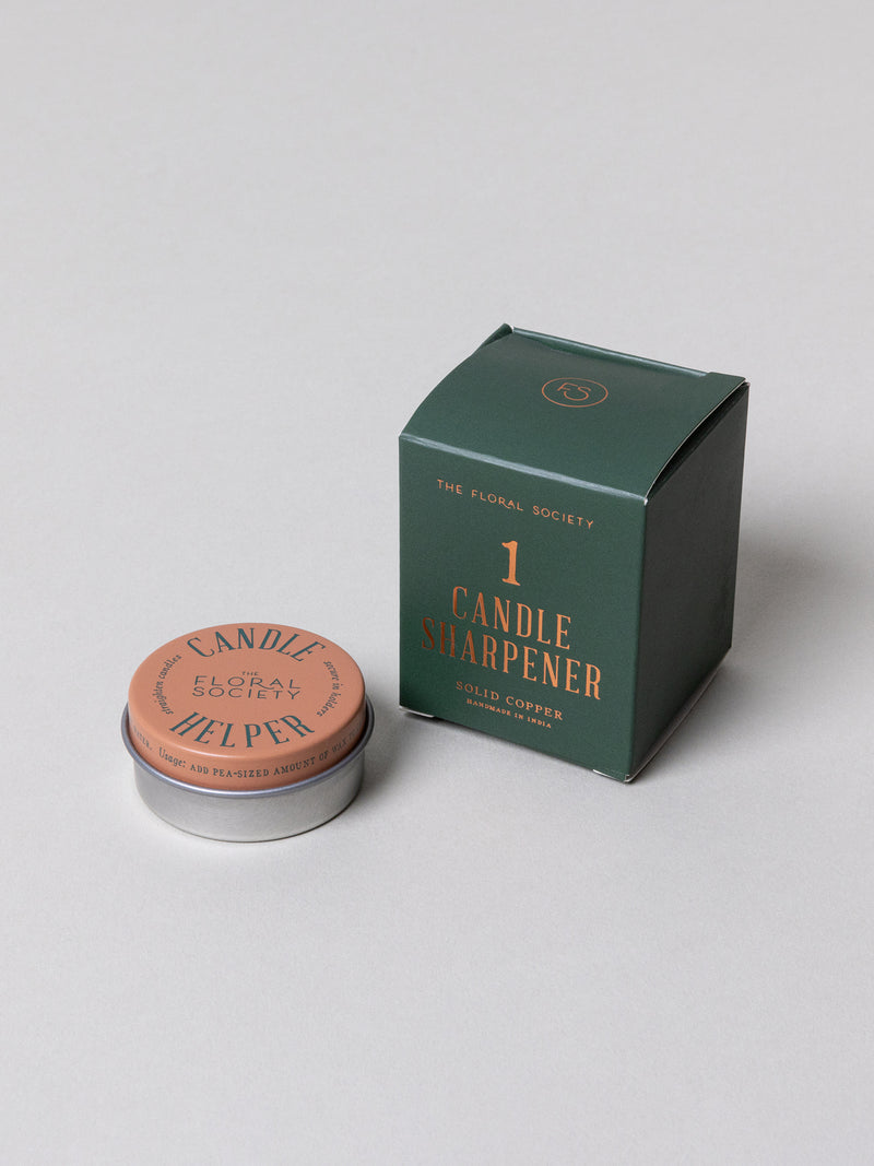 The candle sharpener is the perfect tool for shaping taper candles to fit into any holder. Gently shave away a thin layer of wax from the base of the candle until a desired diameter is reached. Handmade and solid copper.